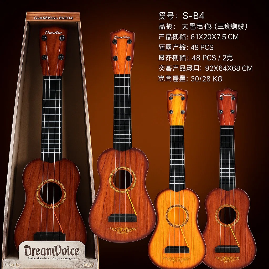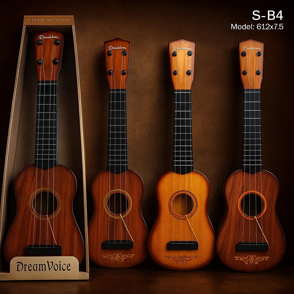 El Ukelele Infantil “DreamVoice” es el instrumento ideal para introducir a los más pequeños en el mundo de la música. Con un diseño realista tipo guitarra clásica y acabado de madera, este ukelele de juguete estimula la creatividad, la coordinación y el amor por los sonidos desde una edad temprana.