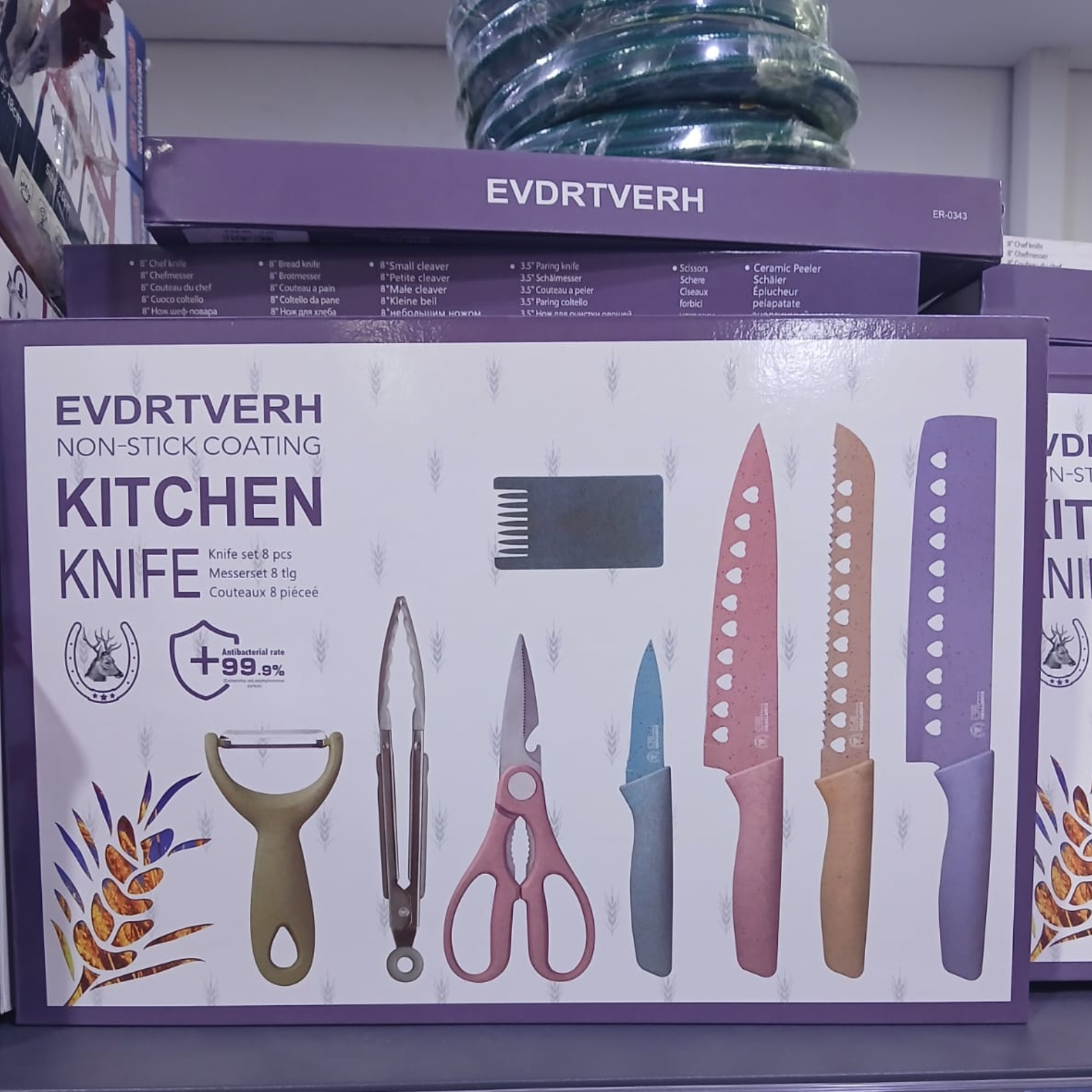 Un juego de 8 piezas de cuchillo de chef es un conjunto de cuchillos de cocina profesionales y multifuncionales, diseñado para facilitar la preparación de alimentos. Generalmente incluye cuchillo de chef, cuchillo para sartén, cuchillo fileteador, cuchillo utilitario, cuchillo para pelar, tijeras de cocina, afilador y soporte o bloque organizador. Están fabricados en acero inoxidable de alta resistencia, con mangos ergonómicos para un agarre seguro y preciso, ideales tanto para chefs profesionales como para uso doméstico.
