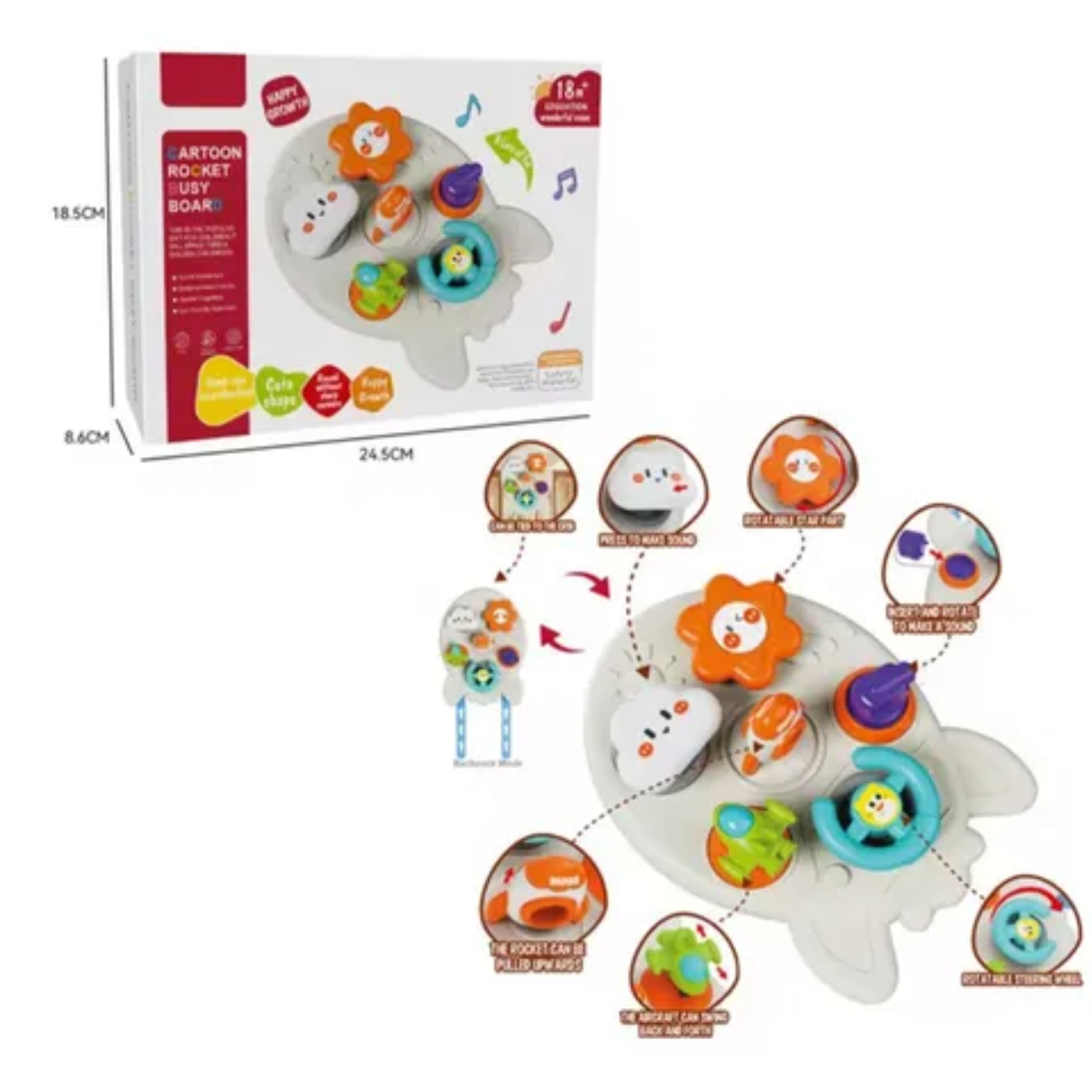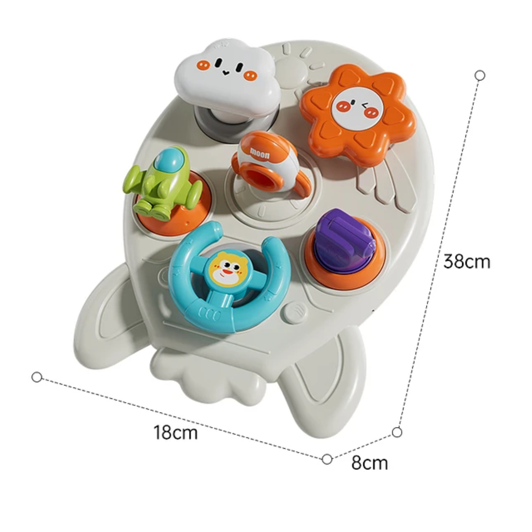 El juguete cohete de estimulación para bebé es un juguete sensorial y educativo diseñado para favorecer el desarrollo temprano a través del juego. Generalmente elaborado en materiales seguros y libres de tóxicos, combina colores llamativos, texturas, sonidos y actividades interactivas que captan la atención del bebé. Su forma de cohete estimula la curiosidad y la imaginación, convirtiéndolo en un accesorio ideal para la exploración y el aprendizaje en la primera infancia.
