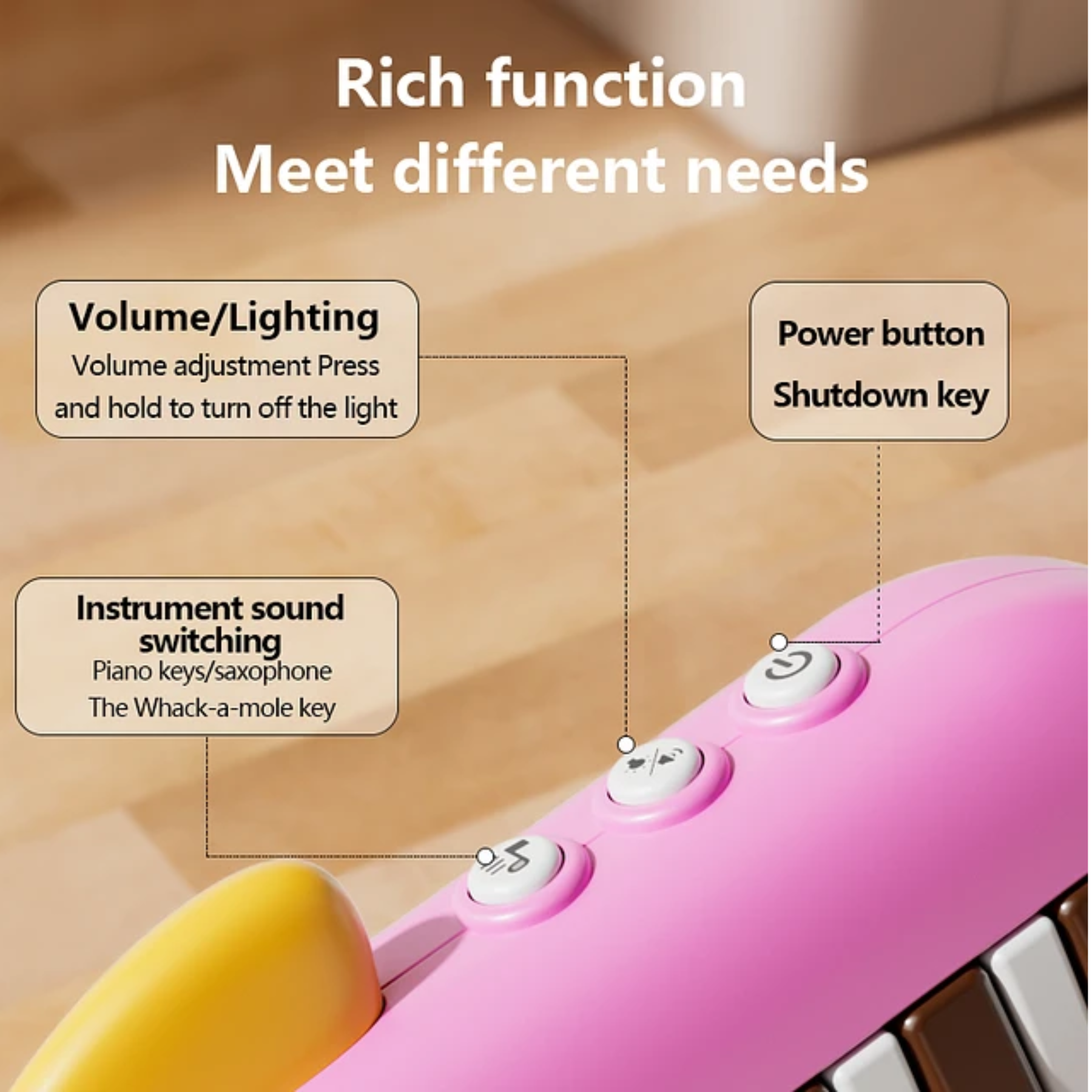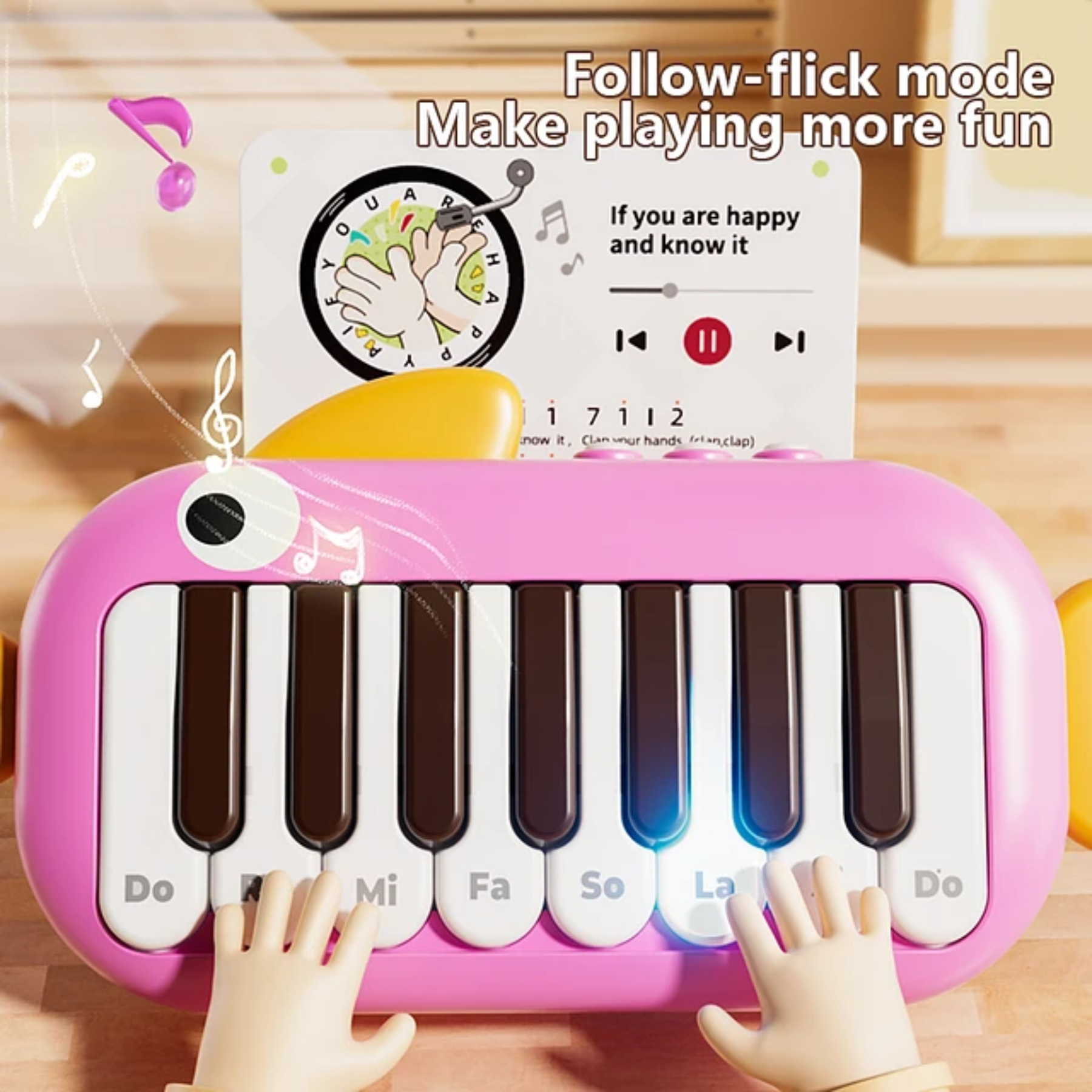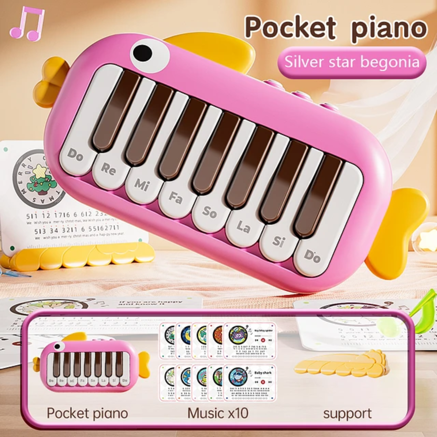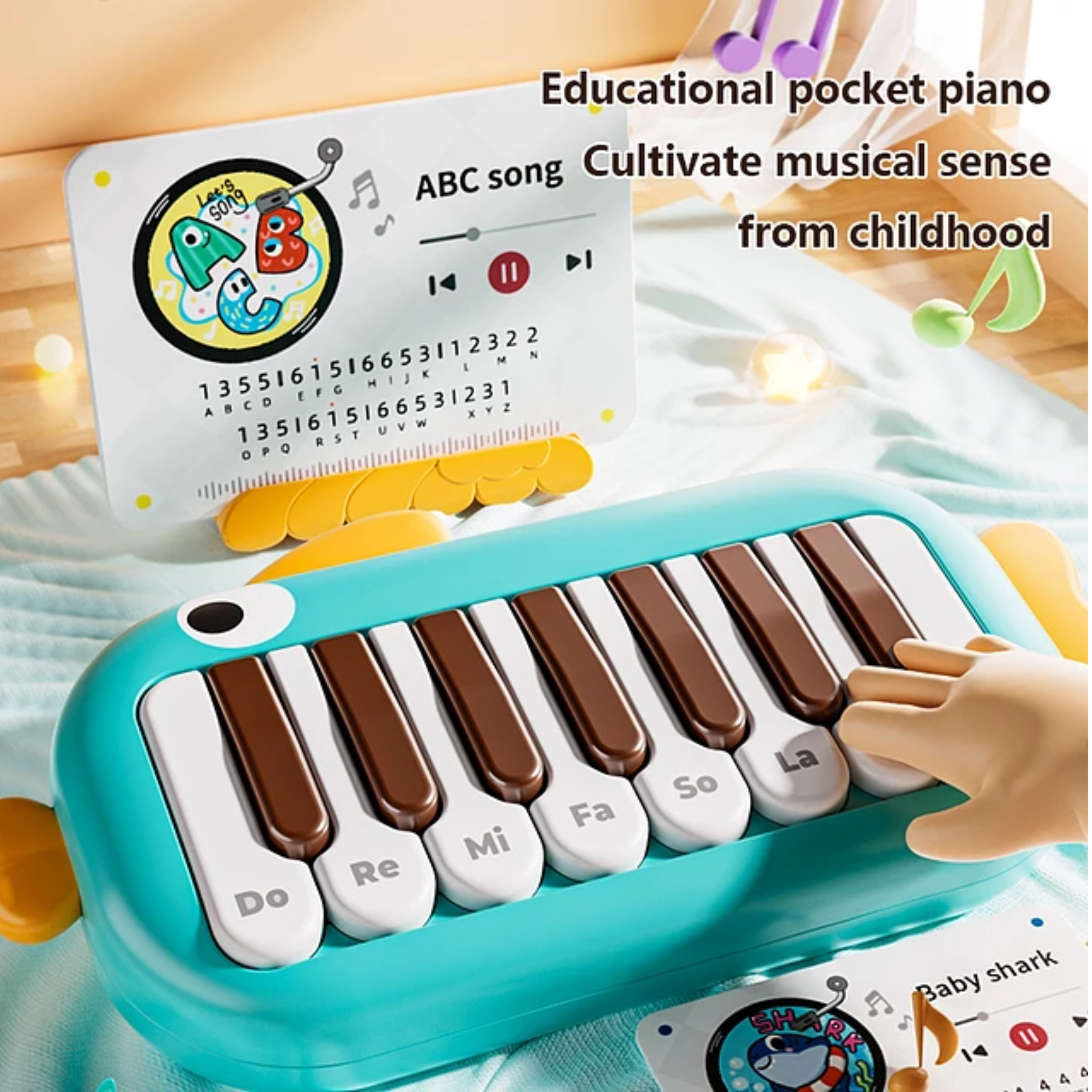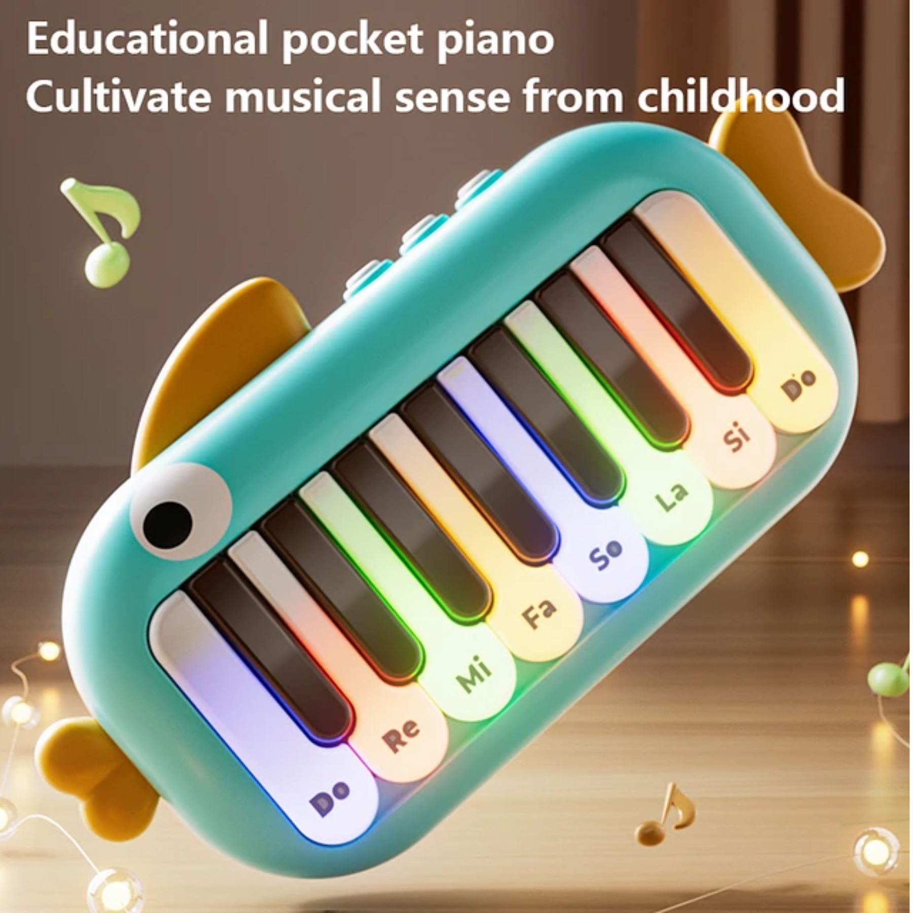 El juguete piano musical didáctico con luz diseño pescado es un instrumento interactivo para bebés y niños pequeños, fabricado en materiales seguros y coloridos. Su original forma de pez combina teclas musicales, sonidos divertidos y luces intermitentes que captan la atención del niño, estimulando sus sentidos mientras aprende a reconocer notas y ritmos. Es un juguete educativo que favorece la creatividad, la coordinación y la exploración musical desde edades tempranas.