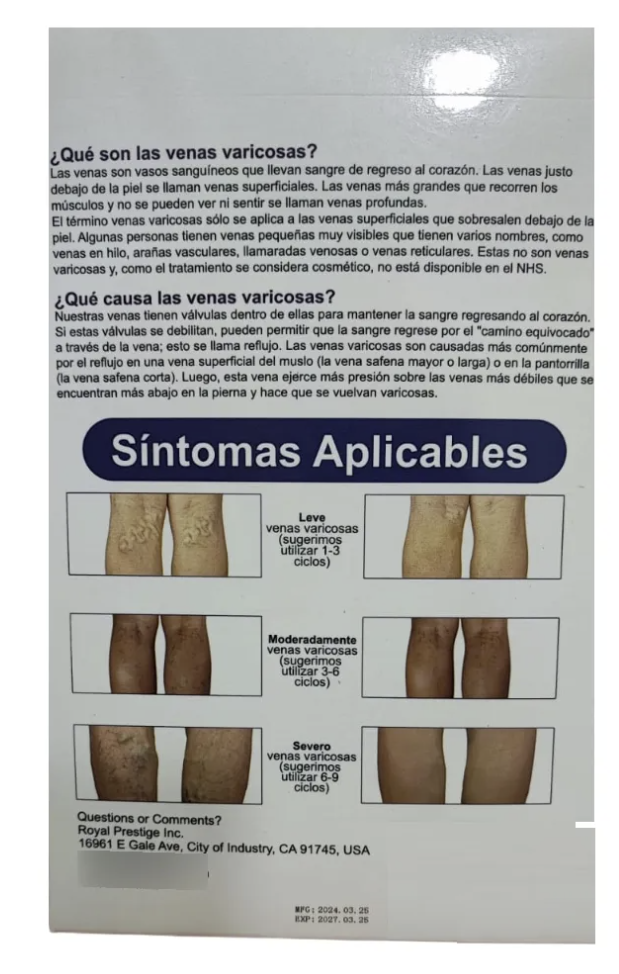 Uso Diario: Ideal para incorporar en tu rutina diaria de cuidado de las piernas, ayudando a mantener la salud venosa y a mejorar la apariencia de las varices con el uso regular.